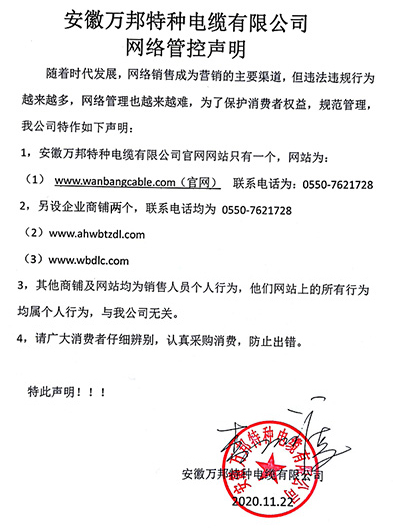 鄭重聲明:安徽萬邦特種電纜有限公司官方網站為:www_wanbangcable_com.ywjunda.cn,除此之外無任何子網站或合作網站,其余均為假冒偽劣。電話:0550-7621728 13485756353 地 址:安徽省天長市滁州高新技術產業開發區經四路29號
